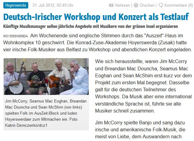 mal vor, wie die Hoyerswerdschen so auf irische Volksmusik reagieren. Nun: Nach