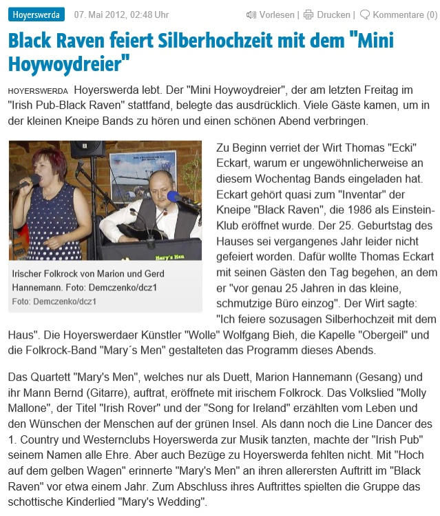 Hoyerswerda. Um Mitternacht sind waren an der Reihe, zu zweit als "Mary's Men",