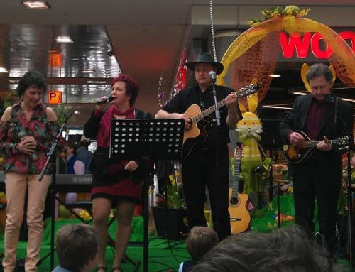 Wir stehen in unserer Mini-Formation zusammen mit Jana und André Bischof von der Musik & Kunst-Schule Bischof auf der Bühne im Lausitzcenter und gestalten das Osterprogramm ein klein wenig mit. •Das Foto hat freundlicherweise Stephan Arnold zur Verfügung gestellt.